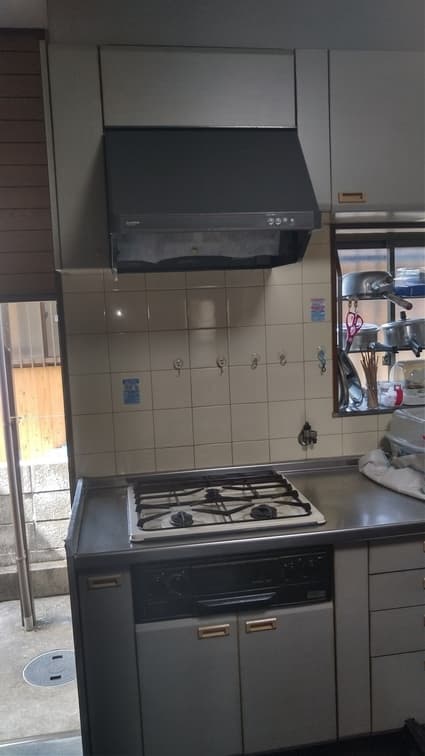 三重県津市にお住まいのお客様宅にて、レンジフード、ガスコンロの取替工事をご依頼いただきました。