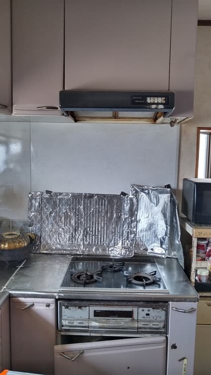 愛知県あま市にお住まいのお客様宅にて、ガスコンロとレンジフードの取替工事をご依頼いただきました。