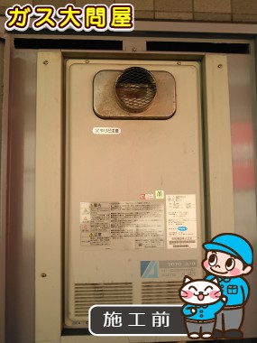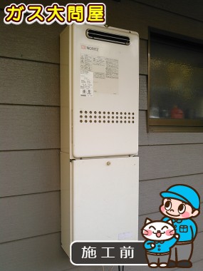 既設熱源機タイプ→追い焚き給湯器に取替の為、扉内取付BOX:UX-A-G2S19(R)を用いて給湯器を設置致しました。