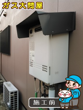 給湯器設置時に、排気がフェンスにあたってしまう為、排気カバー:WOP-8301を取付させて頂きました。