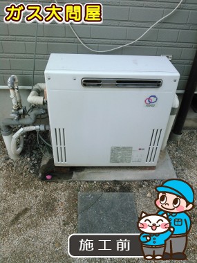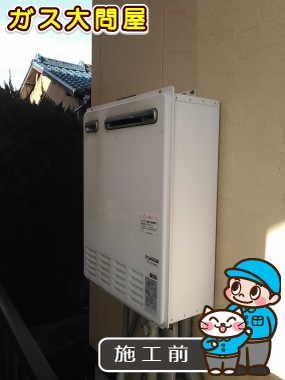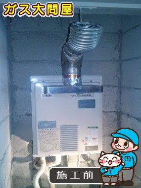 給湯器取替時に標準排気のままだと、隣の家の敷地内に給湯器の排気がいってしまう為、上方排気カバー:HKFA-5を新規に取付させて頂きました。