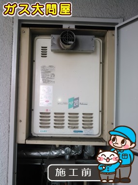 給湯器取替の際に通常の取付ボックスを使用してしまうと、排気筒が扉内にあたってしまう為、取替用取付ボックス:KAAWADK3-15を使用して、給湯器を取替させて頂きました。