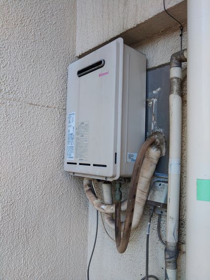 以前のリンナイ製の給湯器 RUX-V1616W-E から、現行のリンナイ製の給湯器 RUX-A1616W(A)-E への取替でした。