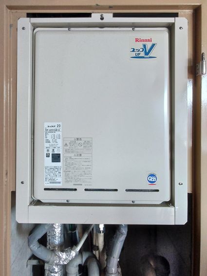 福岡県福岡市中央区の集合住宅にて、ガスふろ給湯器の取替工事を行いました。