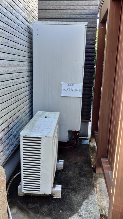 既設の朝日ソーラー製のエコキュート ASQ-3701FS から、コロナ製のエコキュート CHP-E37AY6 への取替でした。