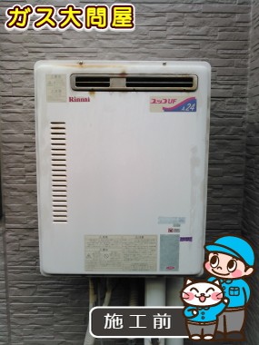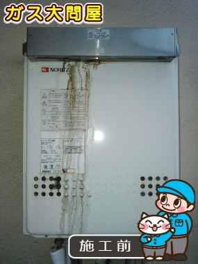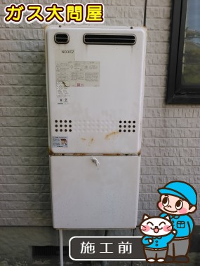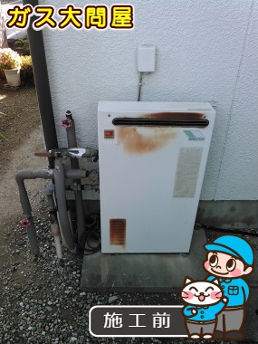 隣接据置きタイプの給湯器から壁掛けタイプの給湯器に取替。