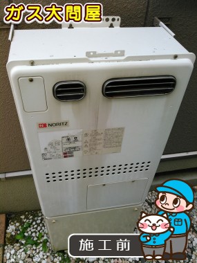 据え置き2つ穴給湯器から壁掛けの設置フリーへお取り替えをさせて頂きました。玄関側に設置されている給湯器だったので、お客様ご要望によりなるべく配管が隠れる用にギリギリまで本体を下に付け、配管カバーですっきりと収める事ができました。