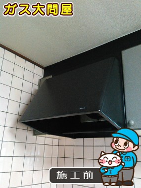 既設プロペラレンジフードをプロペラ取替キットを用いてシロッコファンノンフィルタ―レンジフードに取替ました。