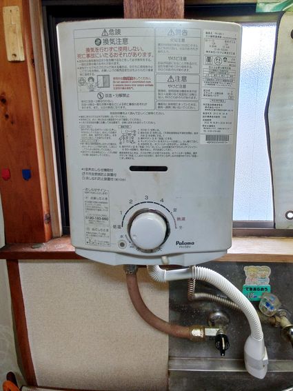 既設のリンナイ製のガス瞬間湯沸かし器から、パロマ製のガス瞬間湯沸かし器 PH-5BV への取替でした。