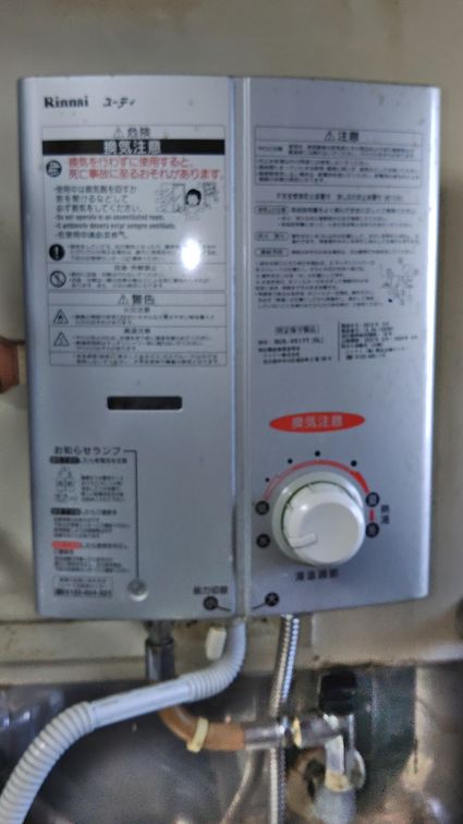 以前のリンナイ製のガス瞬間湯沸かし器から、現行のリンナイ製のガス瞬間湯沸かし器 RUS-V51YT(WH) への取替でした。