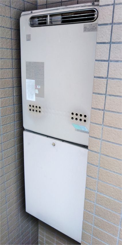 福岡県福岡市中央区の集合住宅にて、ガス給湯器の取替工事を行いました。