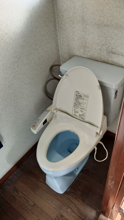 トイレ室内の向かって右奥に、柱が通っていたため、トイレタンクは、レバーが向かって左側に付いているものへの取替でした。
