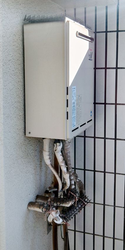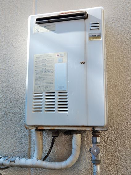 以前のリンナイ製の給湯器 RUX-V1615W-E から、現行のリンナイ製の給湯器 RUX-A1616W(A)-E への取替でした。