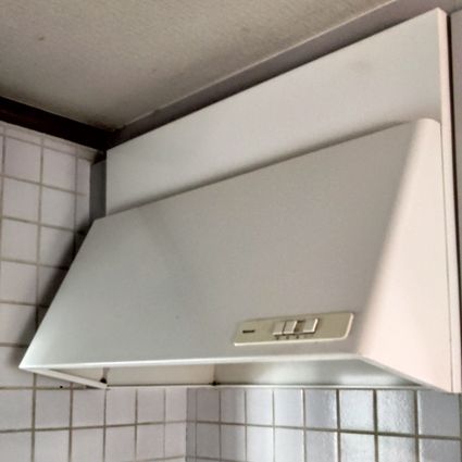 フィルターの掃除が不要なノンフィルタータイプのレンジフードへの取替でした。