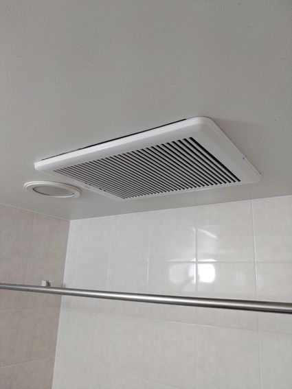 浴室の天井に穴を開け、電気工事を行い、浴室暖房乾燥機を設置しました。きれいに設置することができました。