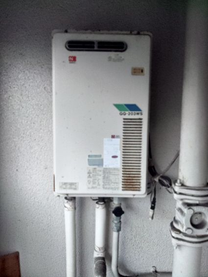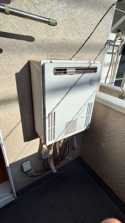 既設のパロマ製の給湯器 DH-N241AWDL3 から、リンナイ製の給湯器 RUFH-A2400AT2-3(A) への取替でした。