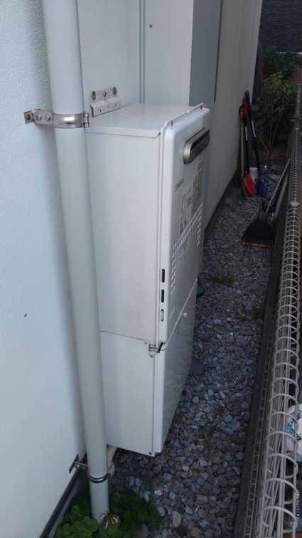 取替前は壁掛設置でしたが、給湯器が重く、外壁への負荷が大きいため、取替後は据置設置に変更しています。