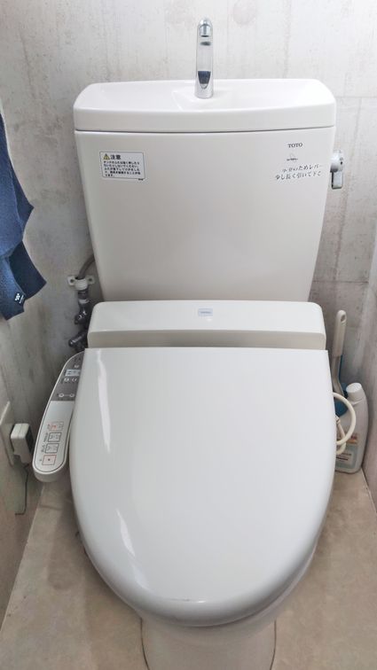 以前のTOTO製のトイレから、現行のTOTO製のトイレ ピュアレストQR への取替でした。