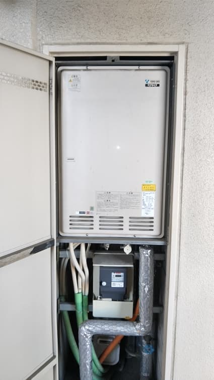 愛知県名古屋市中川区にお住まいのお客様宅にて、ガス暖房機能付き給湯器を交換致しました。