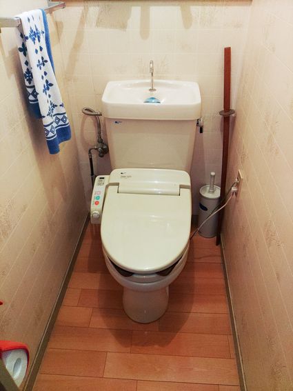 以前のINAX製のタンクレストイレ サティス から、現行のリクシル製のトイレ アメージュ への取替でした。