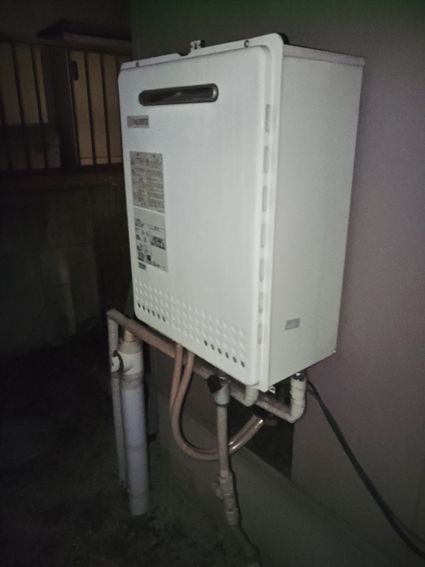 既設のノーリツ製の従来型給湯器から、パロマ製のエコジョーズ給湯器 RUF-E2008SAG(B) への取替でした。