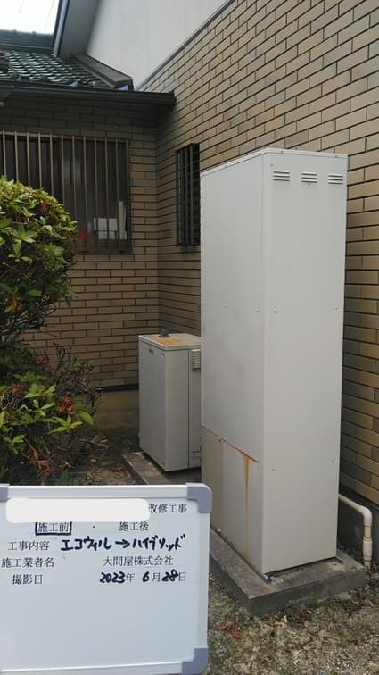 愛知県日進市にお住まいのお客様宅にて、ハイブリッド給湯器を交換致しました。