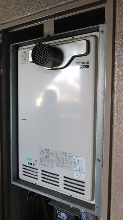 愛知県名古屋市中村区にお住まいのお客様宅にて、ガス暖房機能付き給湯器の取替工事をご依頼いただきました。