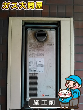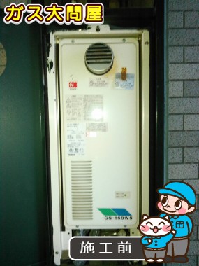 以前のノーリツ製の給湯器 GQ-168WS-T から、現行のノーリツ製の給湯器 GQ-1628WS-T BL への取替でした。