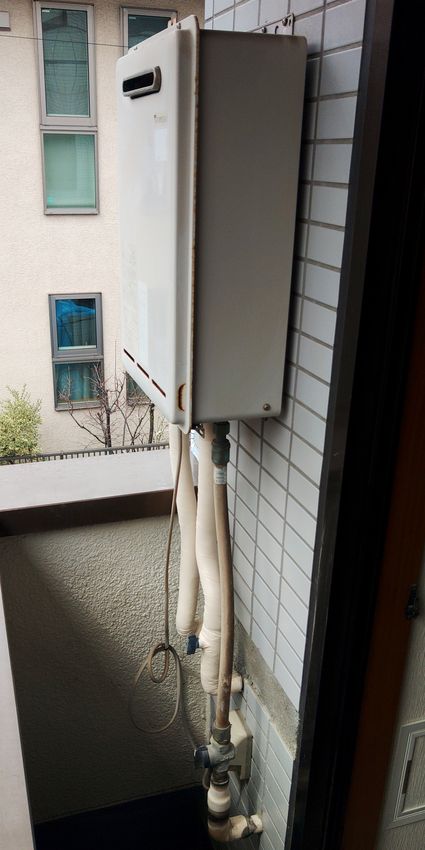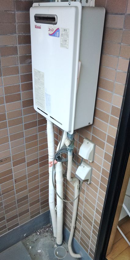 以前のリンナイ製の給湯器 RUX-V1616W-E から、現行のリンナイ製の給湯器 RUX-A1615W(A)-E への取替でした。