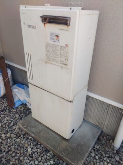 以前のリンナイ製の給湯器 RUFH-VD2401AW2-3 から、現行のリンナイ製のエコジョーズ給湯器 RVD-E2405SAW2-3(C) への取替でした。