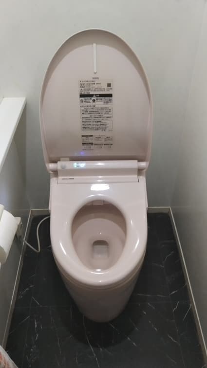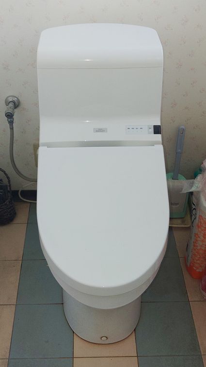 既設のTOTO製のトイレから、リクシル製のシャワートイレ一体型トイレ プレアスLSタイプ への取替でした。