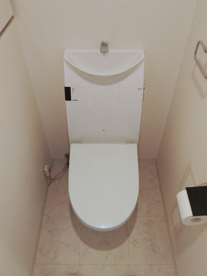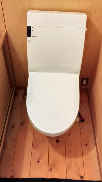 トイレのタンクがなくなり、すっきりとした仕上がりになりました。
