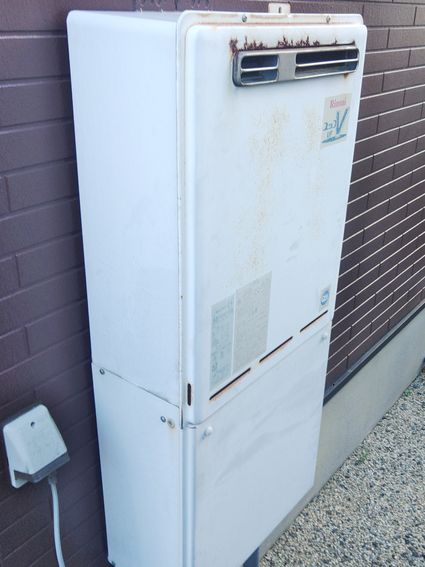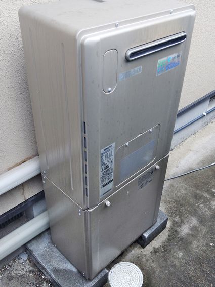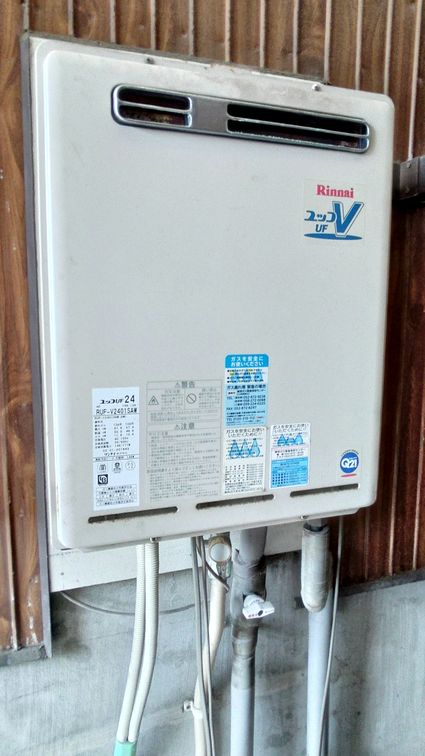 以前のリンナイ製の給湯器 RUF-A2400AW(A)から、現行のリンナイ製のエコジョーズ給湯器 RUF-E240EAW への取替でした。