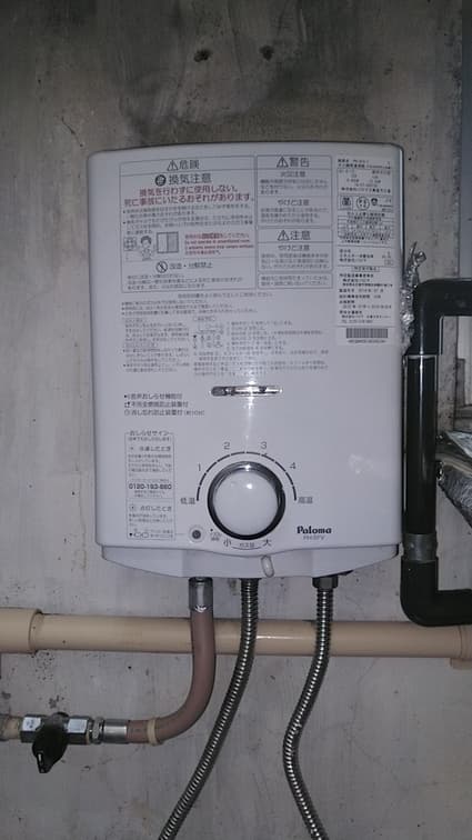 以前のパロマ製の湯沸かし器 PH-5RFE から、現行のパロマ製の湯沸かし器 PH-5FN への取替でした。