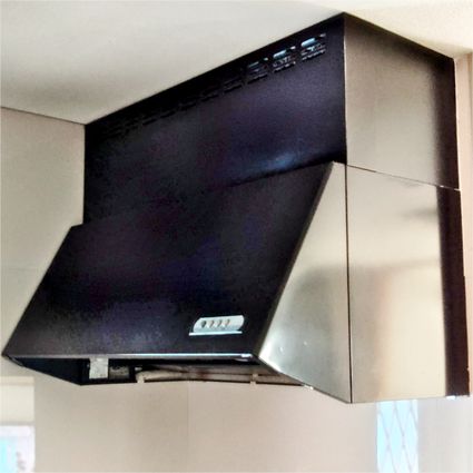 既設のブーツ型レンジフードから、リンナイのスリム型レンジフード TLR-3S-AP902SV への取替でした。