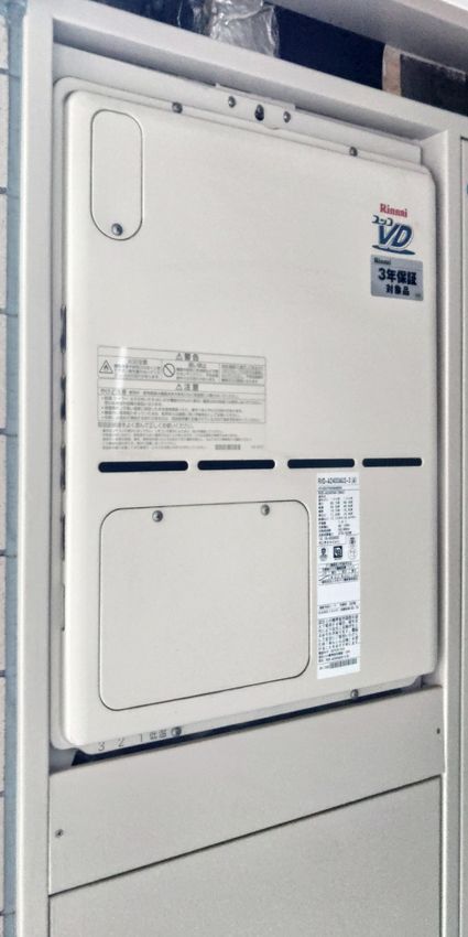 以前のリンナイ製の給湯器 RVD-A2400AU から、現行のリンナイ製の給湯器 RVD-A2400SAU(B) への取替でした。