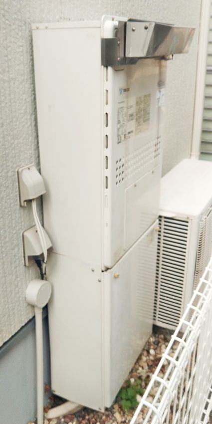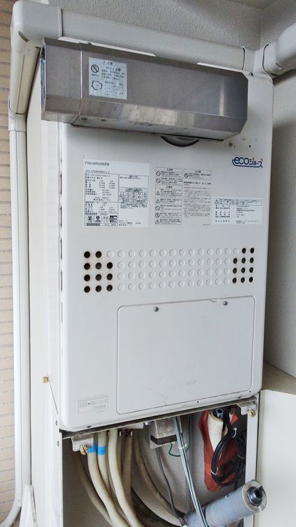 以前のリンナイ製の給湯器 RUFH-K2403SAT2-3(A) から、現行のリンナイ製のエコジョーズ給湯器 RUFH-UE2407AT2-3(A) への取替でした。