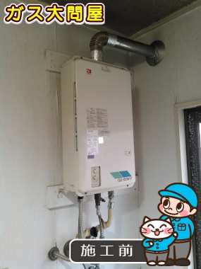 既設のノーリツ製の給湯器 GQ-701W から、リンナイ製の給湯器 RUX-A1015W(A)-E への取替でした。