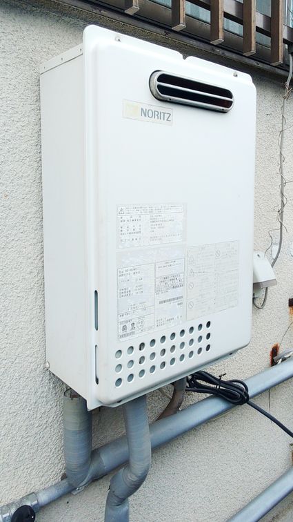 以前のノーリツ製の給湯器 GQ-1637WS から、現行のノーリツ製の給湯器 GQ-2037WS-IS への取替でした。