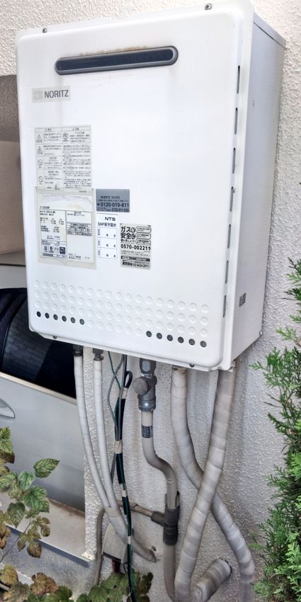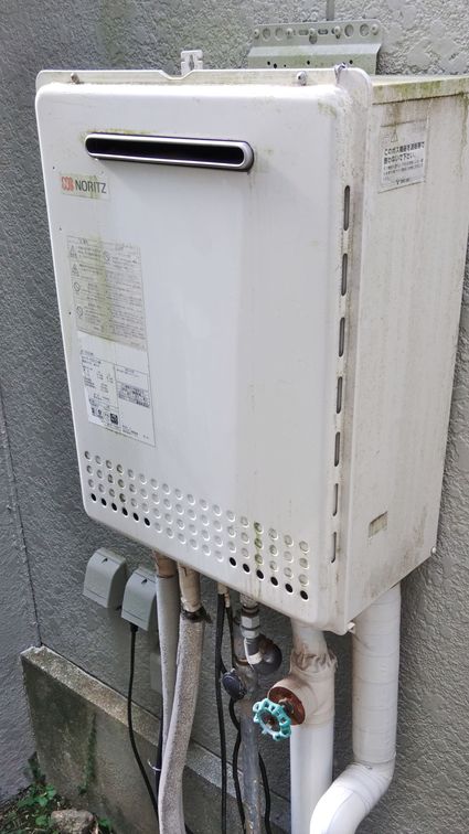既設のノーリツ製の給湯器 GT-2028SAWX から、パロマ製の給湯器 FH-2023SAWL-1 への取替でした。
