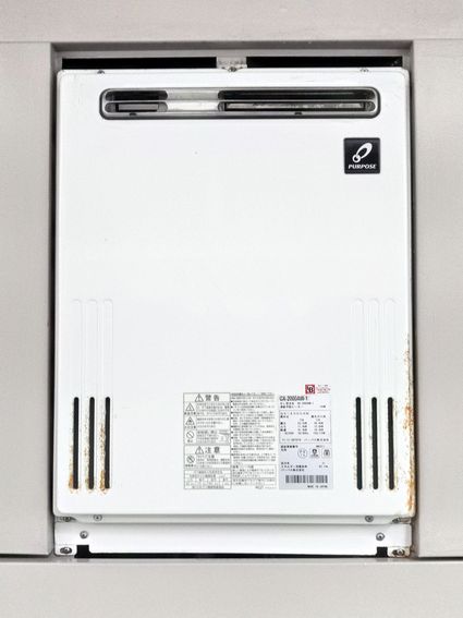 既設のパーパス製の給湯器 GX-2000AW-1 から、リンナイ製の給湯器 RUF-A2005SAW(C) への取替でした。