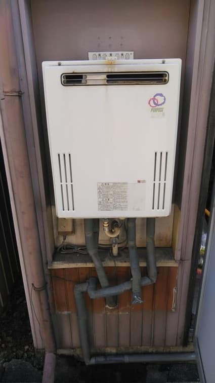 既設のパーパス製の給湯器 GX-204AW-1 から、パロマ製のエコジョーズ給湯器 FH-E2022SAWL への取替でした。