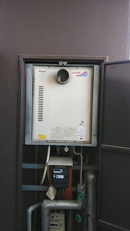 東京都世田谷区の集合住宅にて、ガスふろ給湯器の取替工事を行いました。