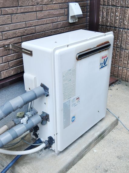 以前のリンナイ製の給湯器 RUF-A2003SAG から、現行のリンナイ製のエコジョーズ給湯器 RUF-E2008SAG(B) への取替でした。