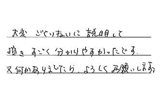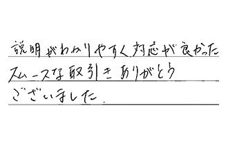 説明がわかりやすく、対応が良かった。スムーズな取引きありがとうございました。
