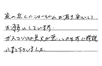 家の近くにショールームが有り、安心してお願いしています。ガスコンロの点火が悪いのも、すぐ修理に来て下さいました。