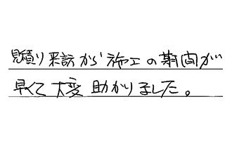 工事に速くとりかかって下さって、本当に助かりました。説明も丁寧で、安心しました。10年保証も安心です。ありがとうございました。
