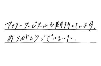 受付の女性の対応も良かったです。越谷店の御二人の仕事も良かったです。金額も満足して居ます。今後もよろしくお願い致します。