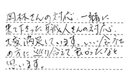 岡林さんの対応、一緒に来て下さった職人さんの対応、大変満足しています。いい会社の方に巡り会えて、良かったなと思います。