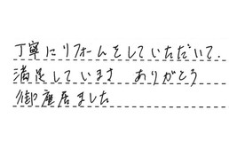 丁寧にリフォームをしていただいて、満足kしています。ありがとう御座居ました。